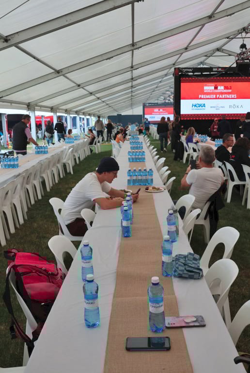 Kurz vor 12 Uhr haben wir uns mit Rolf, einem Routinier im Ironman-Business, getroffen, um an das Briefing zum Rennen zu gehen.